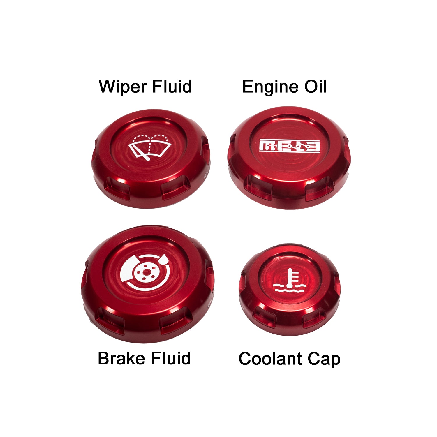 2014+ Forester includes replacement caps for: coolant, wiper fluid, engine oil, and brake fluid