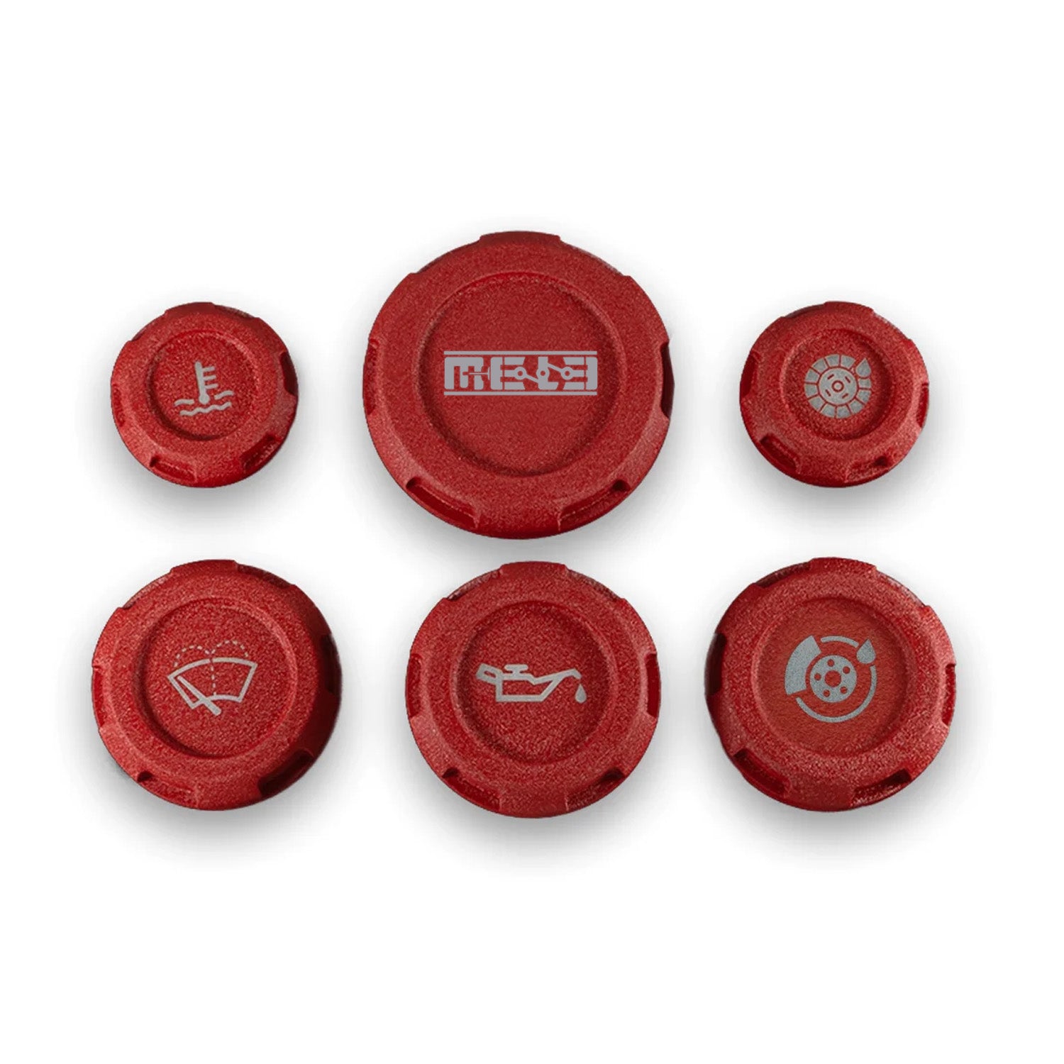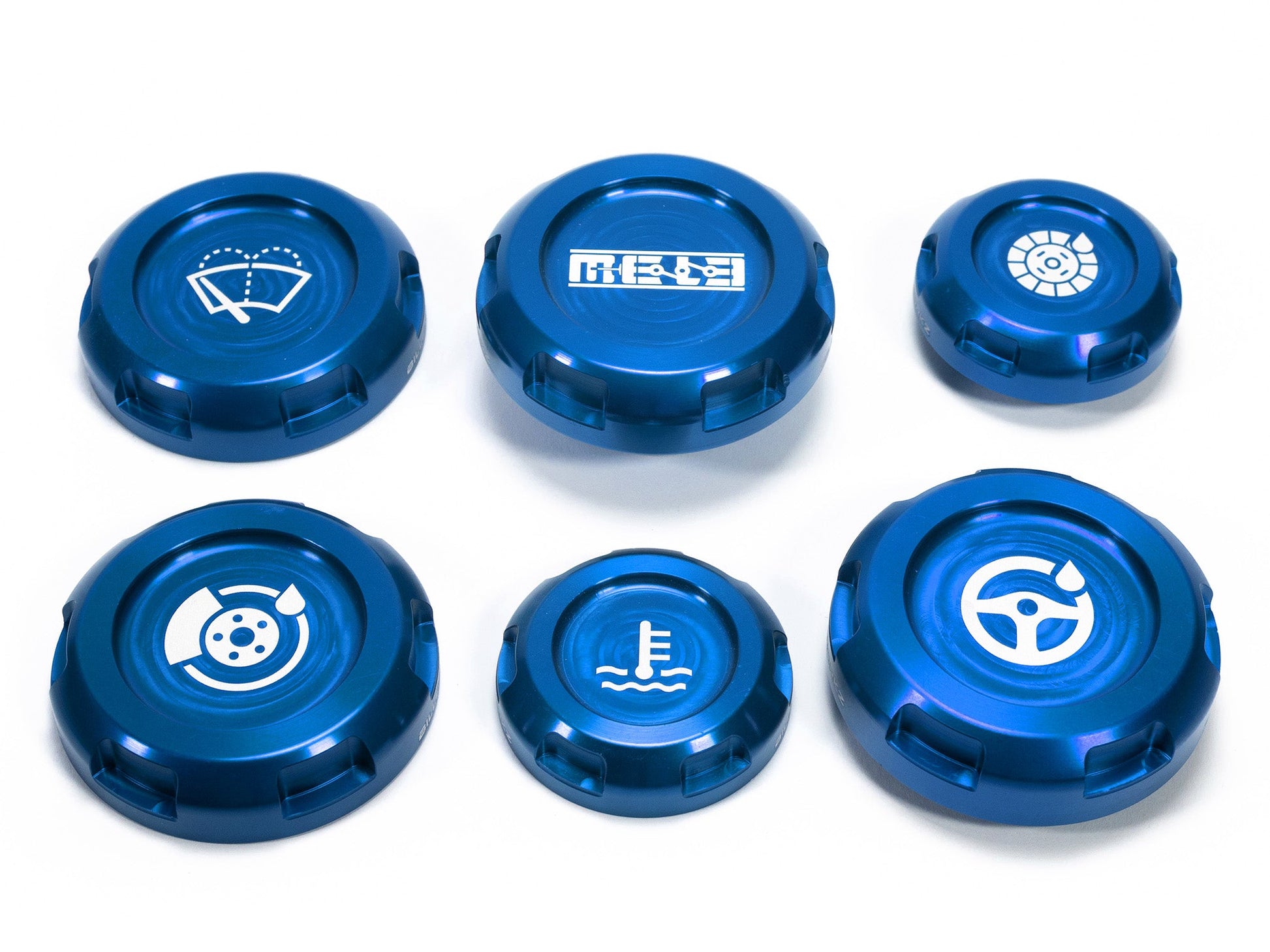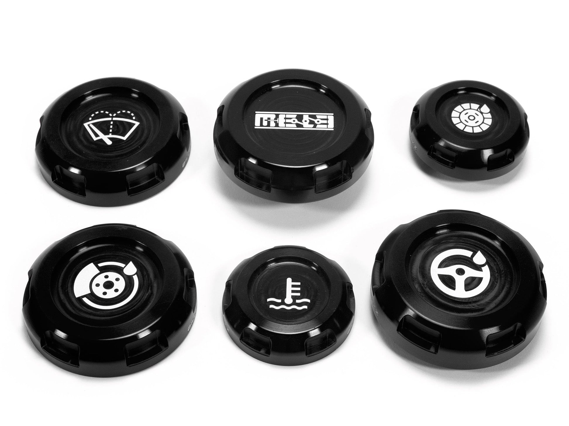 2008-2014 WRX/STI includes replacement caps for: coolant, power steering, clutch, wiper fluid, engine oil, and brake fluid