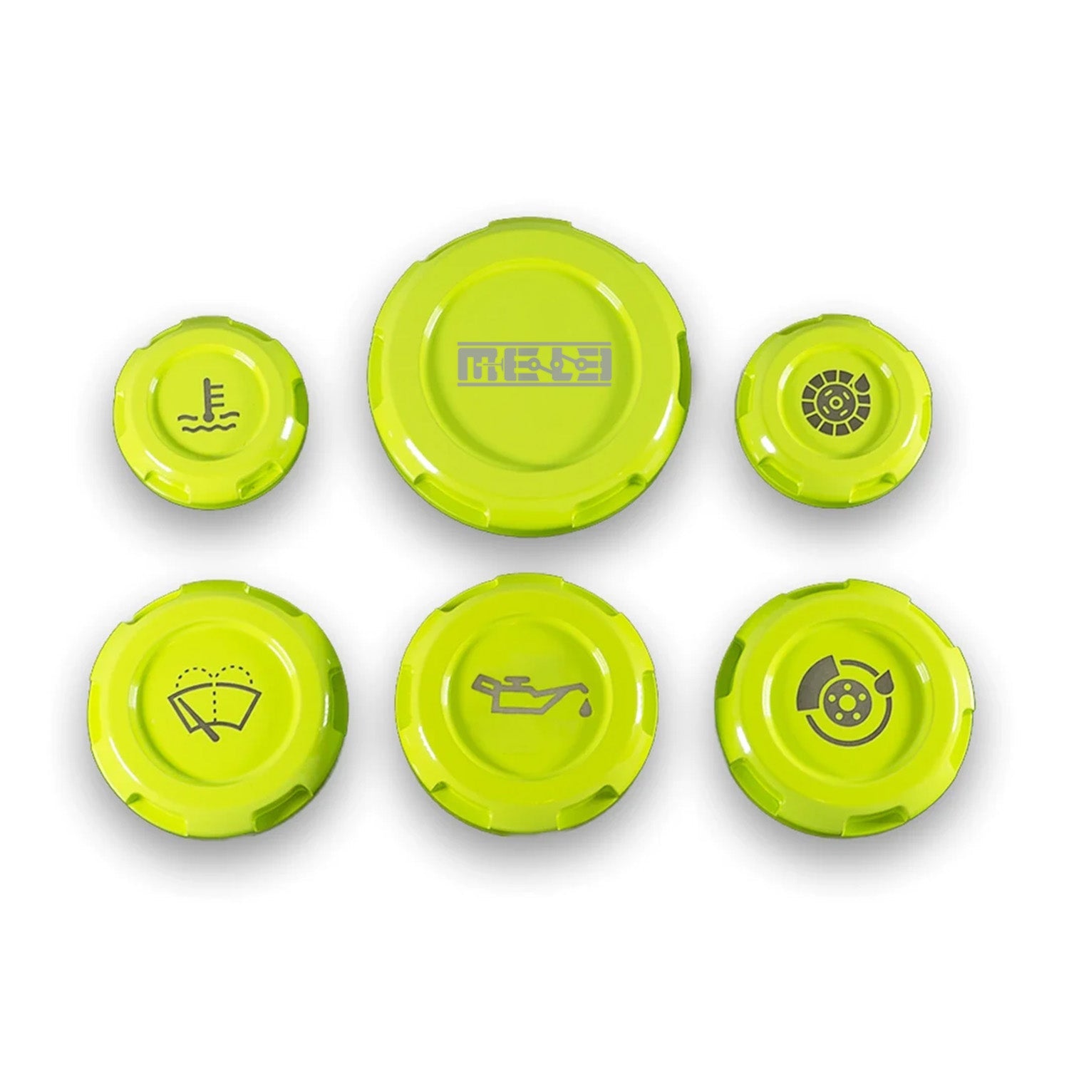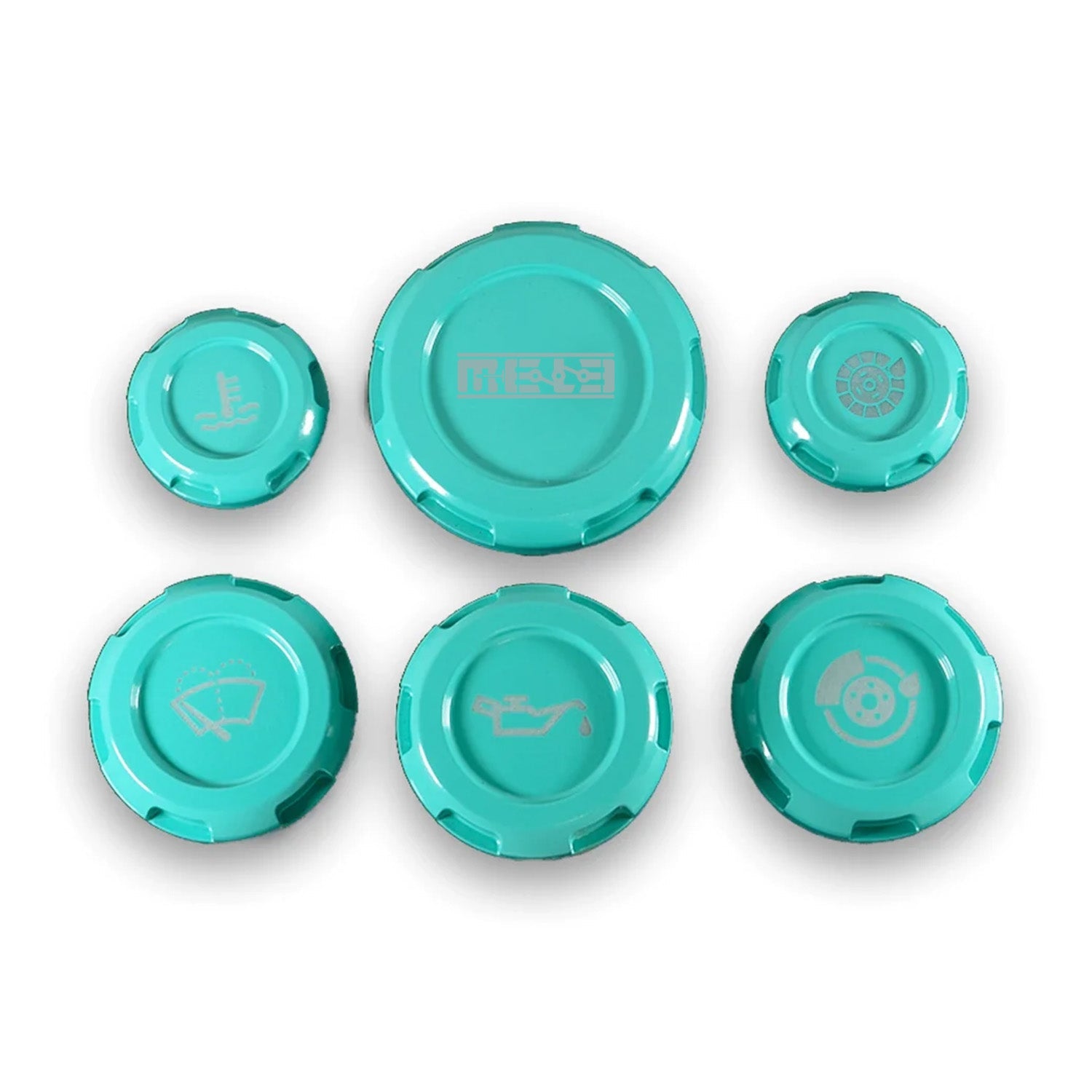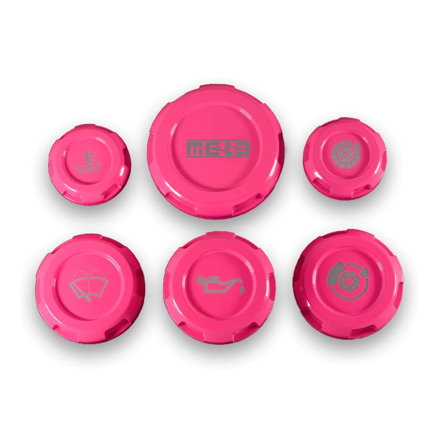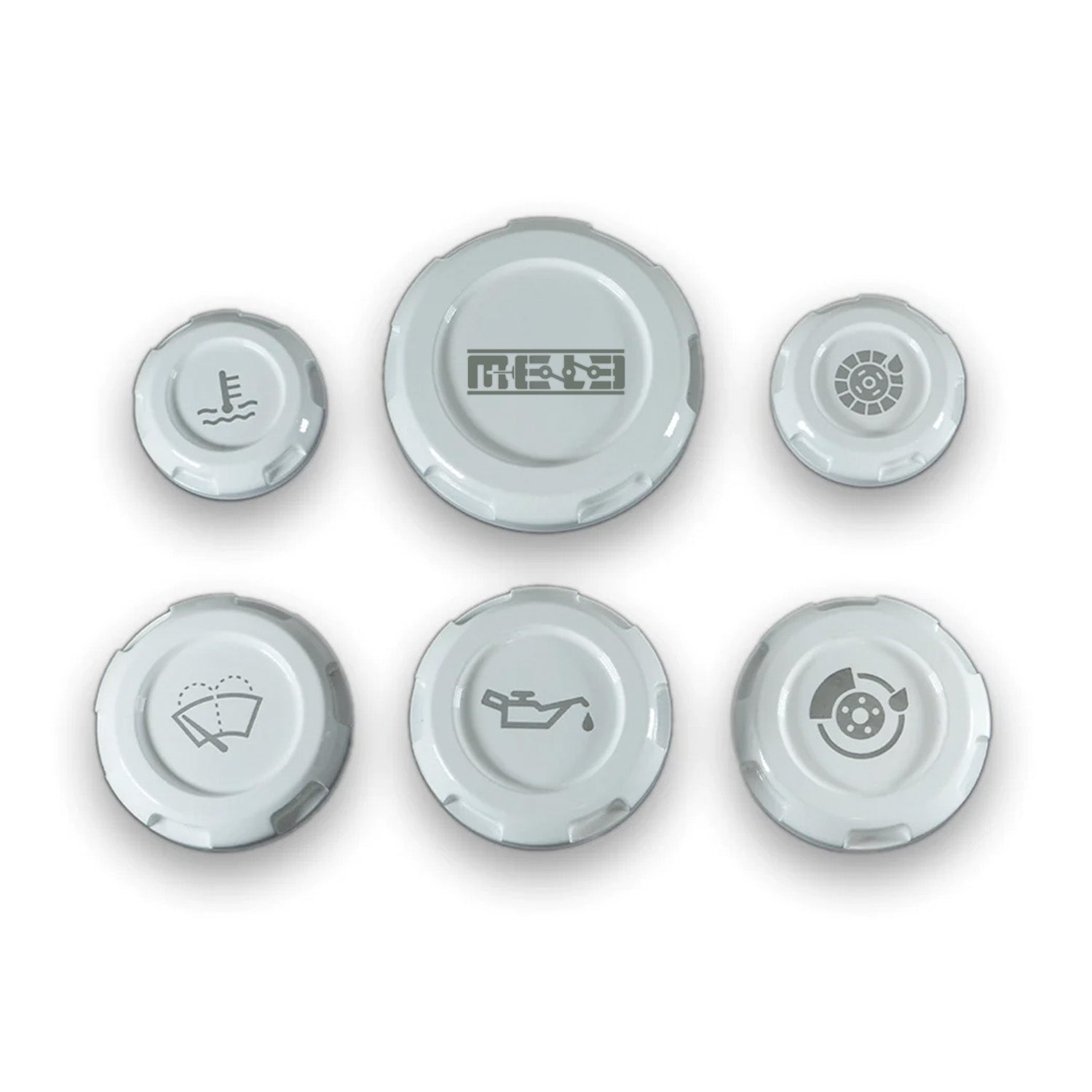 2008-2014 WRX/STI includes replacement caps for: coolant, power steering, clutch, wiper fluid, engine oil, and brake fluid