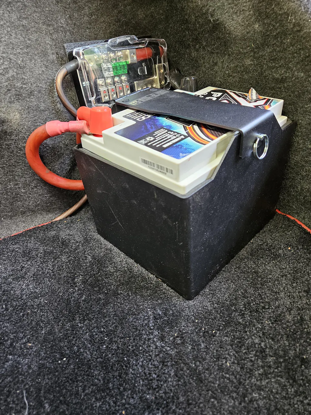 Install was very easy, and was less than 10 minutes to install after deciding on the location/orientation, and prepping the area (cutting holes in the factory trunk carpet for the mounting points). I installed the mounting bracket using the supplied M6x1.0 rivnuts. It was super easy.. I would definitely recommend for anyone doing a battery relocation. I think it would even work for the guys who move their battery to inside the bumper cover in from of the drivers tire on the SRT-4.